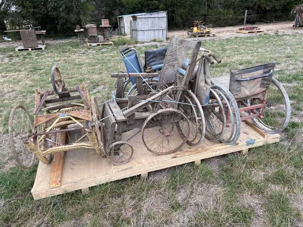 5 x Old Wheelchairs inc. cane framed chair