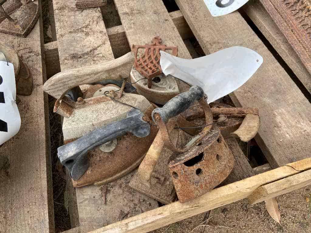 Assorted wheels, sieves, old milk can Sold for $250.00