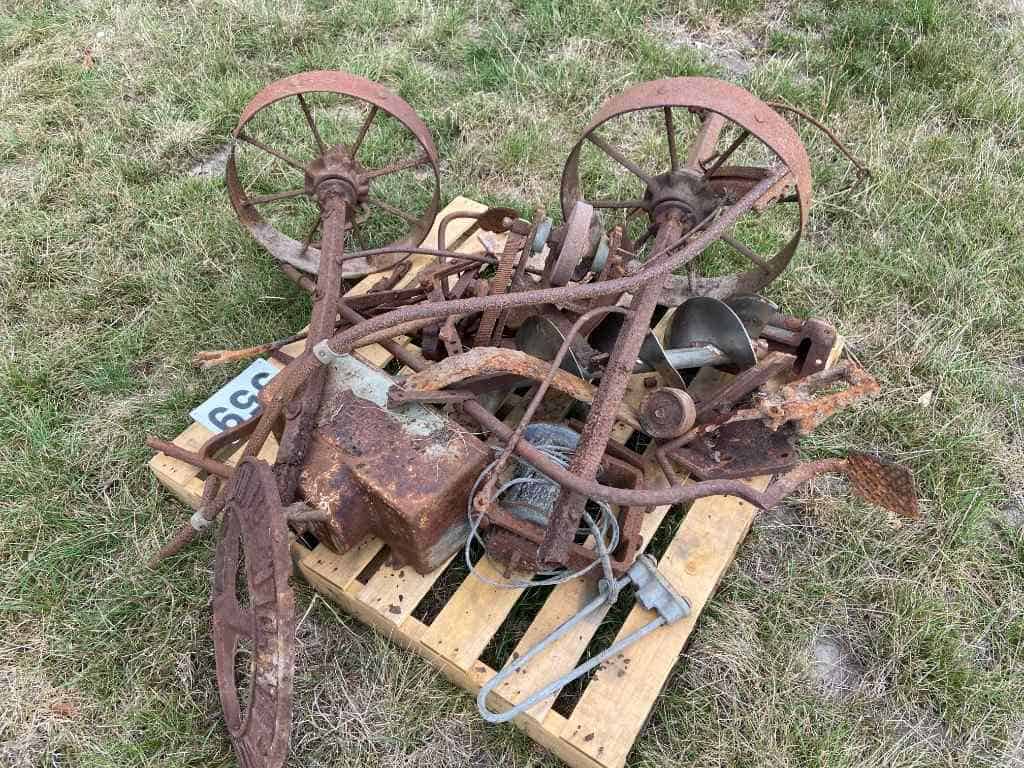 Steel wheeled 2 Disc plough Sold for $305.00 -