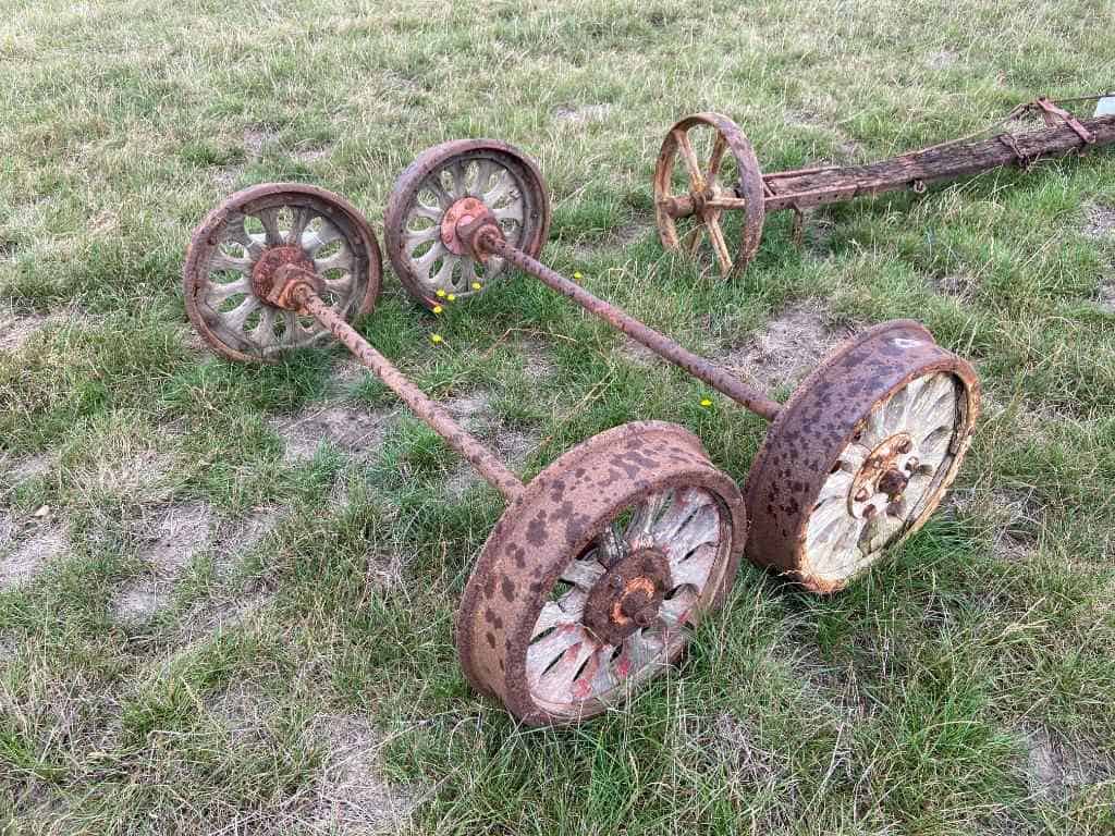 Wooden spoked Railway Wheels x 4 & axles